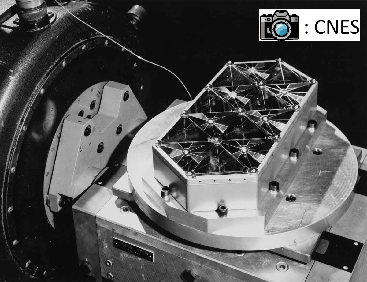 Et devine ce qu’il y a sur son dos ? Un réflecteur laser fabriqué par le CNES avec 14 « catadioptres » (des sortes « d’yeux de chat » de précision).